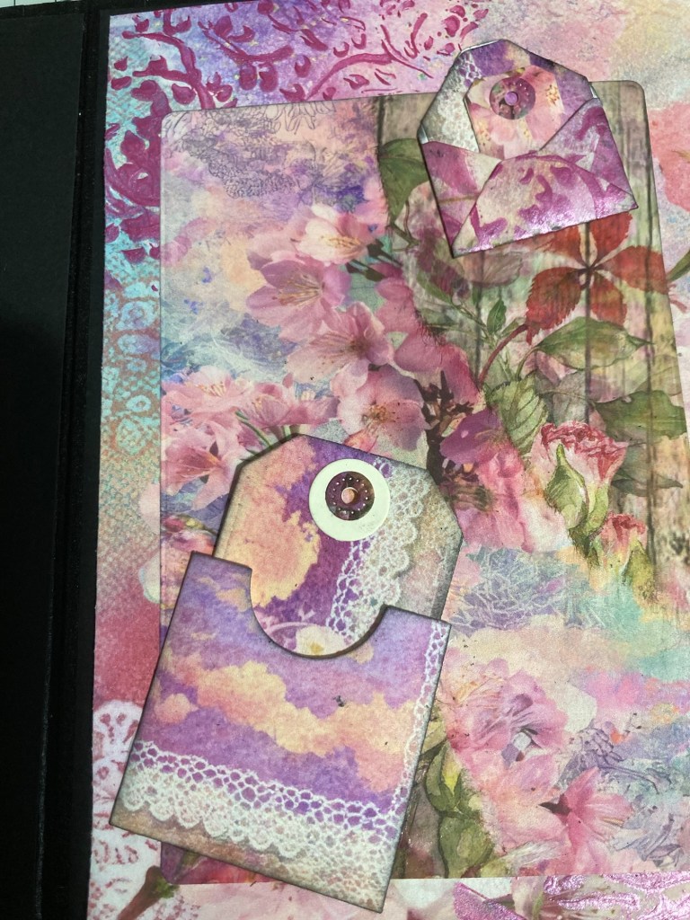 Today I’ve begun adding some small details to the decorated pages using some of the new CoolKatz Pocket Book Filler dies.